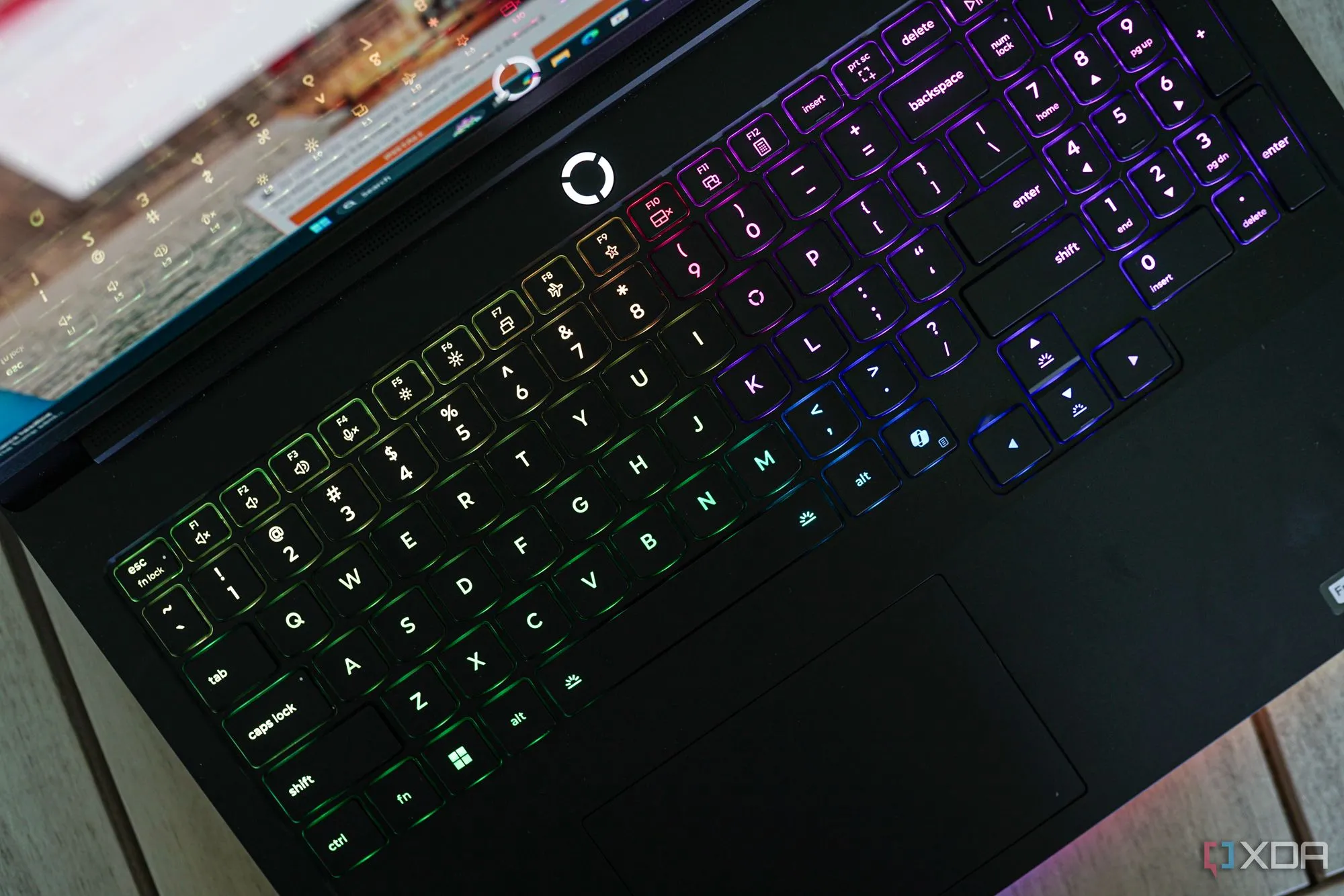Chúng tôi luôn là một fan hâm mộ lớn của bàn phím TrueStrike của Lenovo, đặc biệt là trên Legion Pro 7i với khả năng tùy chỉnh đèn RGB cho từng phím. Bạn có hành trình phím sâu 1.6mm, tương tự như nhiều laptop Asus, nhưng Lenovo có khả năng reset phím nhanh hơn nhiều. Bạn sẽ có được sự cân bằng giữa độ nảy mà bạn tìm thấy trên bàn phím MacBook và độ sâu bạn có trên bàn phím Asus. Đối với một người gõ mạnh tay như chúng tôi, sự cân bằng đó là hoàn hảo. Chúng tôi có thể gõ liên tục mà không cần kiểm tra xem có bỏ lỡ phím nào không, và cũng không có cảm giác như đang gõ vào một “vũng bùn”.